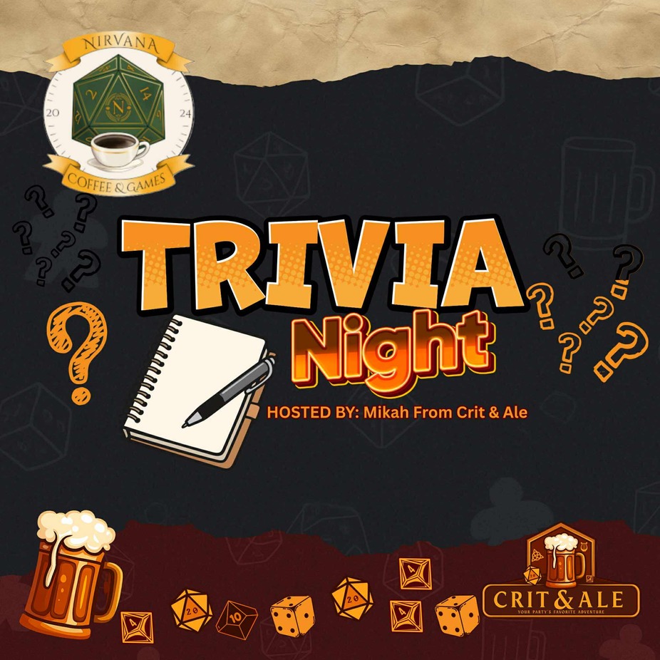 Get ready to put your knowledge to the test at our Trivia Night hosted by Crit & Ale happening in the Game Lounge starting at 6:30 PM with an all new host, Mikah! Trivia enthusiasts of all levels are welcome to join in on the fun! Team Details: Team Size: 2 to 5 players Entry Fee: Absolutely free! Prizes: Exciting prizes will be awarded to the top teams of the evening. Show off your trivia prowess and take home some fantastic rewards!